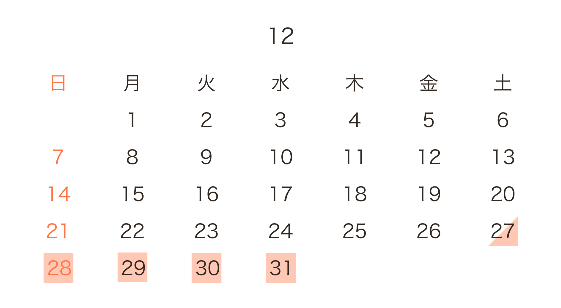 12/27(土)午後, 28(日)〜1/4(日)